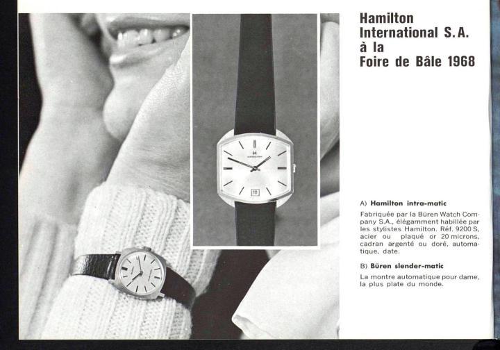汉密尔顿于1968年巴塞尔钟表展推出的Intra-Matic表款,该报道发表于Europa Star 1968年杂志的第四期