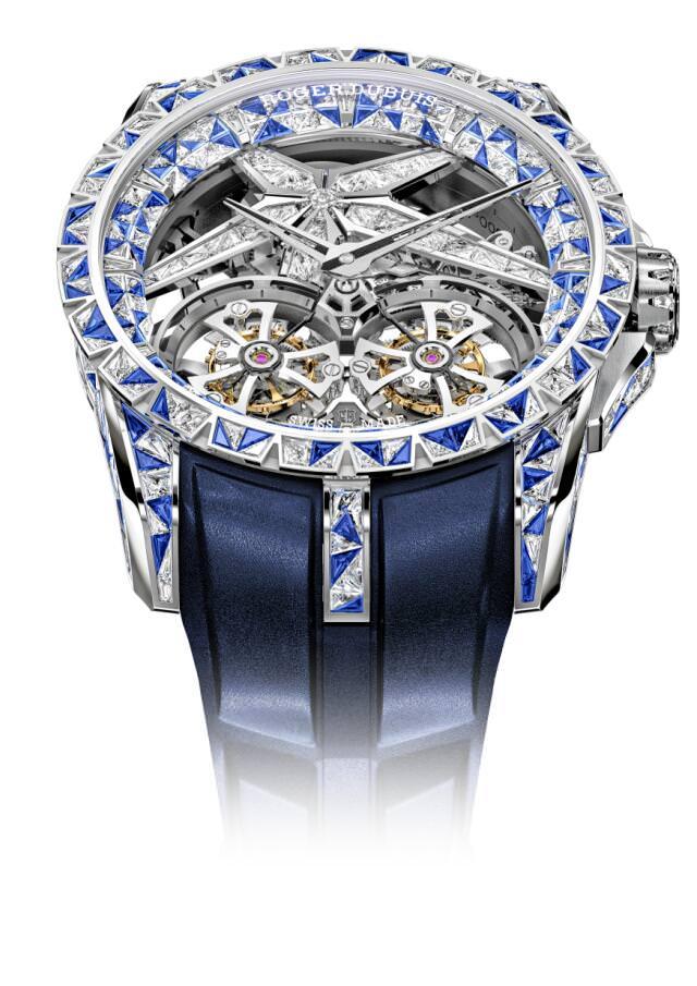 Roger Dubuis罗杰杜彼Excalibur Superbia腕表,以精湛的工艺,构筑简洁线条与清晰轮廓。腕表以富含钯的白金制成,镶嵌600颗珍贵白钻与耀眼蓝宝石,RD108SQ双飞行陀飞轮,向精妙制表工艺再度挑战。