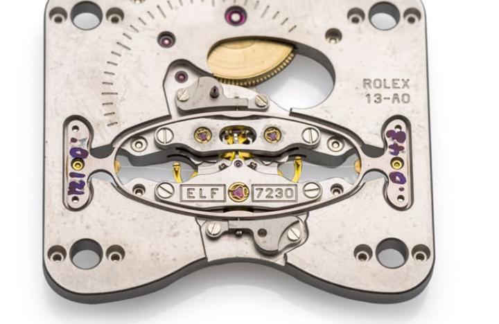 话说在2018年安帝古伦一场拍卖会上曾出现一枚稀奇的劳力士概念机芯——ELF 7230,机芯名称的前三个字母其实是缩写,分别代表Echappement(英文Escapement之意)、Lame(英文Blade之意)和Flambage(英文Buckling之意),大致来说就是一种全新型态的擒纵机制机芯。