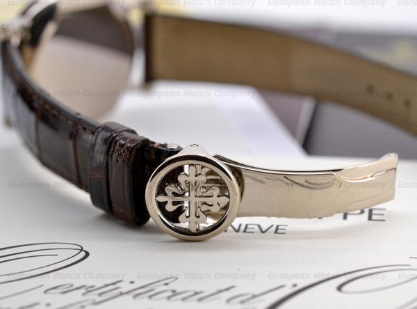折迭扣又有分为双边折迭和单边折迭,先从单边折迭扣开始解说。 折迭扣是为弥补传统针孔式表带的不足而研发的,它最大不同就是将针孔仅仅作为固定表带的一部分,利用针孔将表带固定,而另一端则是金属折迭扣,每天只需挪动折迭扣就能进行摘脱手表的动作,整个过程不会让皮表带造成摩擦,因此能保障表扣周边与真皮表带的完好。 由于前面已经破梗有双边折迭扣,所以不得不交代有关单边折迭扣的缺点,就是单边折迭扣本身设计有一定的长度,对于手腕较细的人来说会出现过大的情况,在调节过程中被局限,勉强佩戴的话会出现松垮的情形,对腕表来说既危险也不美观。