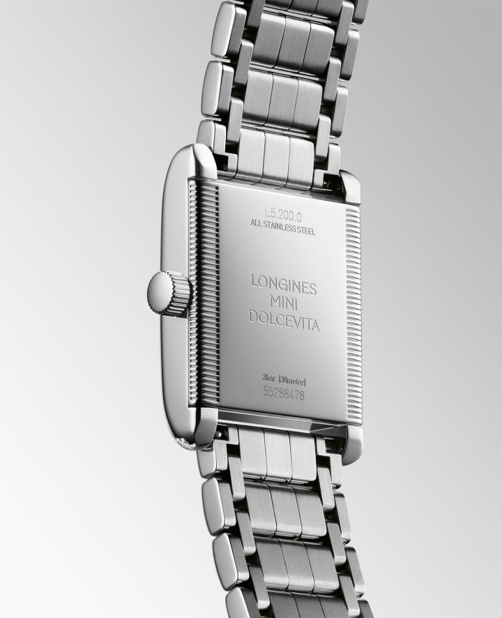浪琴(Longines)永恒的“现代经典”风格在 Mini DolceVita 腕表中得到了充分展现。每款腕表均采用时尚的长方形不锈钢表壳,搭载高精度的L178石英机芯,并具备3巴(30米)的防水性能。