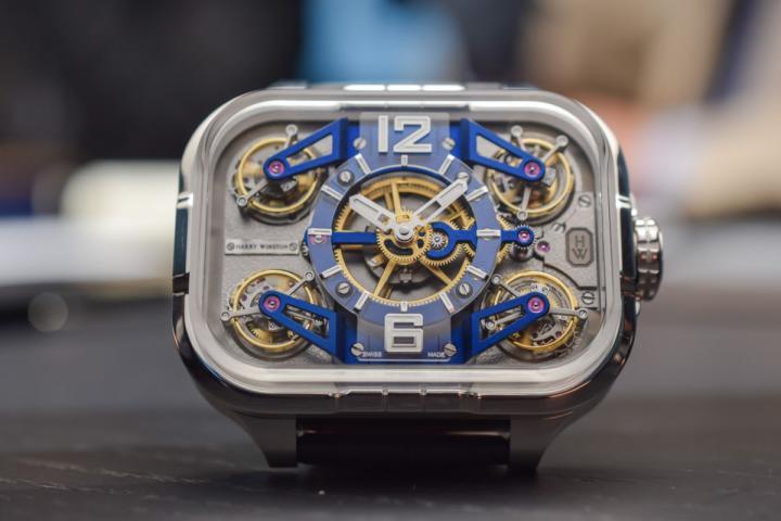 海瑞温斯 Harry Winston 顿推出了一款全新的Histoire de Tourbillon 10号史诗陀飞轮,此次腕表使用了四个陀飞轮让人咋舌。四个陀飞轮完美对称排列,四个相邻且独立的中心,旋转周期为 36 秒,三个差动装置互相协调,令走时极致精准,可说是独一无二的设计。