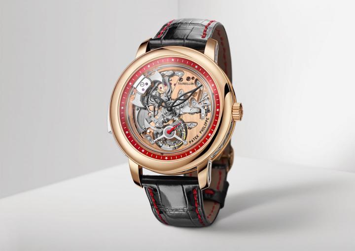 面盘上红色分钟轨道圈搭配白色时标,其中包括12颗星星,百达翡丽以此向新加坡国旗致敬