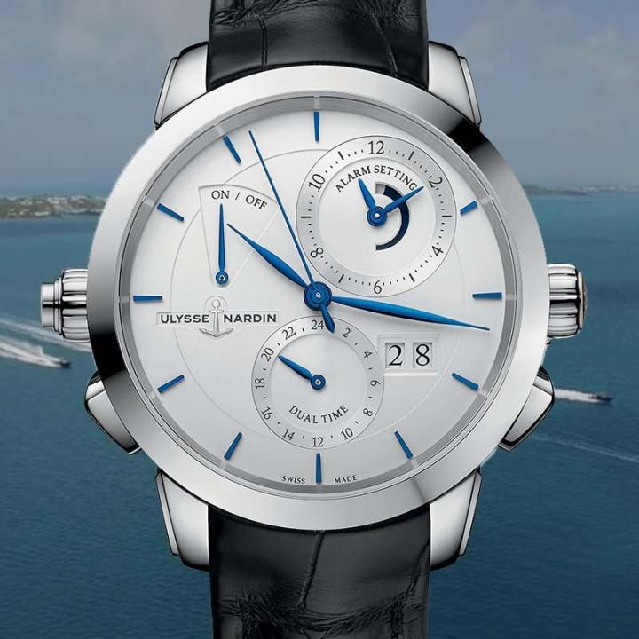 不锈钢材质/UN-67自动上链机芯/时、分、秒、大日期显示/闹铃功能/两地时间显示/闹铃动力储存显示/蓝宝石水晶镜面/防水30米/表径44mm/参考价:200,000 RMB