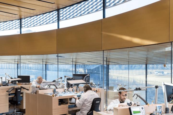 为了让观众一窥复杂功能时计的制作过程,爱彼在螺旋式结构展馆的中心设置了两个非常专精的工坊,以展示爱彼的祖传技艺。其一是大复杂功能工坊,拥有超过648个零件的手表。另一个是Métiers d’Art传统工艺工坊,高级珠宝系列作品在此进行设计,并由资深珠宝师、宝石镶嵌师和雕刻师亲手打造。两大工坊宛如连接过去、现在与未来的桥梁,传承品牌一丝不苟的精神。