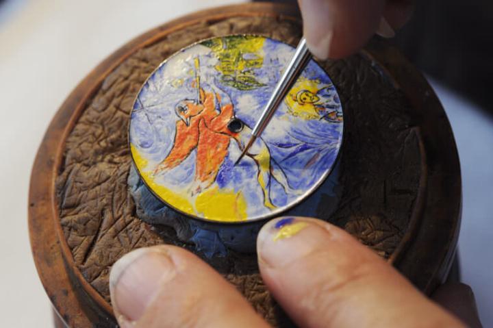 微绘珐瑯的挑战性主要在于需根据原作的光影和色彩调配出丰富而微妙的釉彩,再放入窑炉在800摄氏度以上的高温下反复烧制二十次以上,制作过程需非常谨慎小心