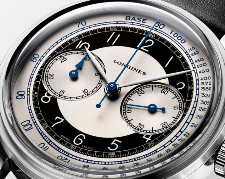 这两款燕尾服手表分为两种功能款式,其中大三针版本的表壳尺寸为直径38.5mm。面盘采用1940年代深受欢迎的设计,它的蛋白石银色面盘周围有黑色圆环;上方涂有Super-LumiNova®夜光涂料的棍形指针,与两枚指针搭配的小秒盘则是偏心设于6点钟位置。手表搭载品牌L893.5硅游丝机芯,对于手表的抗磁性能和走时精准度都有所助益。
