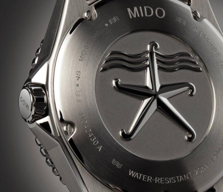 然而海洋之星200米陶瓷圈手表并非只是换换陶瓷圈这么简单,美度表这次也重新设计了手表的外观造型,包括陶瓷圈的刻度就有明显变化。旧款原本只有15、30和45以阿拉伯数字显示刻度,新款则改以10分钟为单位呈现阿拉伯数字刻度,且其前15分钟的下潜计时圈刻度依旧保留,佩戴者若需计算下水时间还是很方便实用。再来表圈12点方向的定位指标也从原本矩形中带有夜光圆点,改成倒三角形轮廓带有夜光圆点。