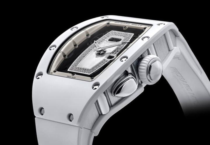 品牌此次用以制作表壳的陶瓷为白色ATZ陶瓷,包括表圈甚至底盖边缘都以此种材质制成,ATZ陶瓷是世上硬度仅次于钻石的材料之一,制作过程必需在2,000巴的高压下注射氧化铝粉末成型,如此可使其硬度增加百分之20到30,并让材料的孔隙率降到最低,RICHARD MILLE採用ATZ陶瓷制作表壳的目的非常明确,因为它既耐刮耐磨,同时色泽也可以常保如新,对于佩戴时的保护性以及观赏性都有正面效应。