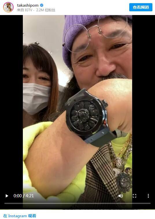 村上隆本人在拿到手表后当然就是立马戴上手把玩一番,从他在IG上Po出的直播影片中我们发现了Classic Fusion Takashi Murakami All Black实表的微笑之花花蕊部分不是设置在蓝宝石镜面下方,而是突出于镜面,这使得微笑之花的花瓣与花蕊两部分会因为有无蓝宝石镜面的覆蓋而产生微妙的视觉变化。同时从大师实际佩戴手表更能感受到微笑之花花瓣旋转的那种动感。