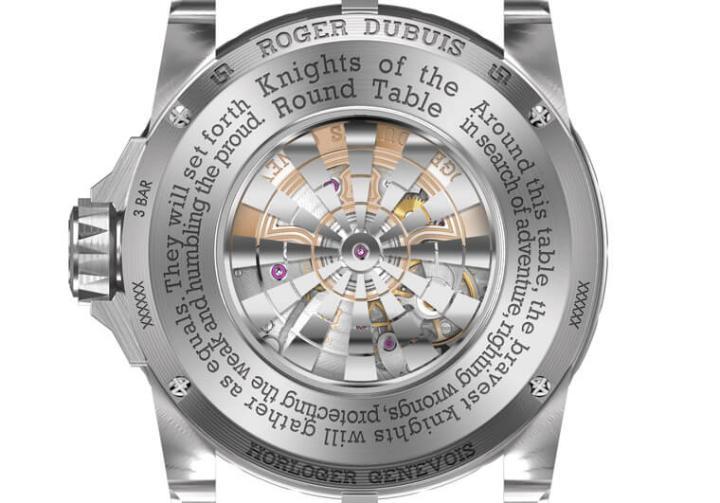 表背透明底盖边缘镌刻了来自圆桌骑士的经典誓言,翻成中文可以理解为““最英勇的骑士们平等地围绕此圆桌齐聚。他们将展开冒险、伸张正义、保护弱者、惩恶扬善。”与此同时,底盖上还印有呼应面盘的放射状同心圆纹,这使得下方的RD821机芯有点若隐若现的味道,从镂空自动盘与机芯底板所刻上的日内瓦印记标志,对照手表本身的质感与细腻作工,佩戴者可以很清楚感受到高级表厂的工艺能耐,这如此别具匠心的作品自然也不会大量制造,罗杰杜彼仅限量发行28只,并且限定品牌专卖店独卖,要价更是不菲,堪比高复杂功能的手表作品,其实若论制作难度,新款王者系列圆桌骑士限量表从表壳加工到面盘上的细致金雕都不会比研发复杂功能逊色,高度的收藏价值让人叹为观止。
