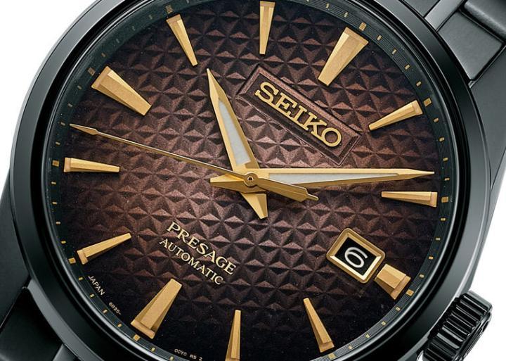 值得一提的是,手表的面盘不只具有棕色渐层色彩,SEIKO还用上了源自日本传统的“麻叶”图腾,以立体化风格加以装饰呈现。在日本文化中,麻叶图腾象征著健康成长与出人头地,这在和服和腰带的面料上颇为常见,品牌在制作过程中是以0.4mm厚的金属板加压成型,由此产生立体化的麻叶图腾,搭配其本身的渐层色调,面盘随着不同角度的光线照射也会变化出丰富的迷人光泽。