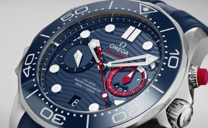 然而小表盘的调整还不是这款海马潜水300米美洲杯计时码表的最大亮点,过往潜水表被认为不该添加太多复杂功能,以免影响到手表的防水能力,但欧米茄以现代制表科技克服了这项关卡,使其在拥有计时功能的同时,还可以采用透背并达到300米的防水性能,品牌这次甚至将计时按把换上蓝色和红色柔软橡胶材质,借此提升按把在水下操作时的手感。