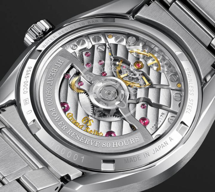 而由于前两款搭载9SA5机芯的作品如SLGH002和SLGH003都具有庆祝GS 60周年的意涵,来到2021年GRAND SEIKO也趁势将机芯的纪念色彩淡化,我们可从机芯镂空自动盘盘缘原本刻印的60周年纪念字样改为”HI-BEAT 36000 POWER RESERVE 80 HOURS”发现微妙的变化,不过也正因为手表少了纪念与限量等身份,反而使其价格能够再往下修,对市场而言不啻也是件好事。