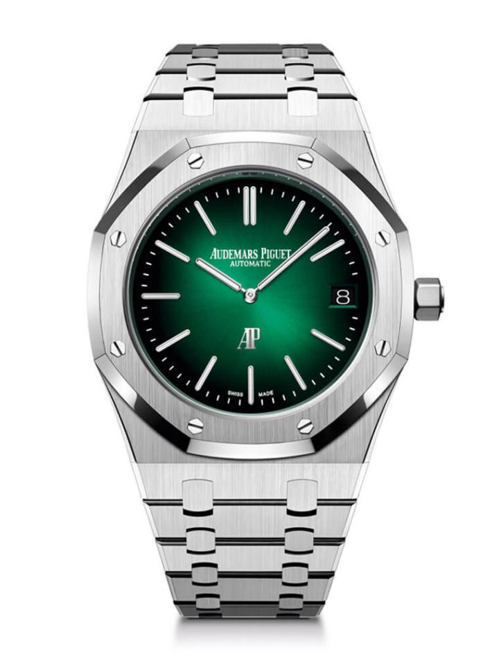 想到AUDEMARS PIGUET爱彼的皇家橡树系列,大家最有印象的颜色应该就是蓝色了吧,主要因为AP在1972年首度发表Royal Oak不锈钢运动表时,便是采用蓝面设计让它深植在人们的印象中。发展到现代后,皇家橡树系列的面盘颜色比起当年已经丰富许多,基本的黑、白、灰面不说,还包括紫色、天蓝色、双色、镂空、渐层、双色等等,品牌最近又再为这份色彩清单多添一笔绿色,一口气发表数款采用绿面的皇家橡树手表。