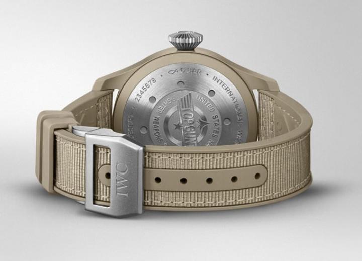 沙色陶瓷的灵感是来自一处美军的海军航空武器基地,它正位于洛杉矶以北大约150英哩的西莫哈韦沙漠上,美军在这建立基地的主要目的包括训练飞行员以及研发空战武器系统等,这与Top Gun系列的创作渊源隐隐呼应,IWC便是由陶瓷壳的颜色联想起莫哈韦沙漠的自然景致,因此帮手表冠上“莫哈韦沙漠特别版”之名。