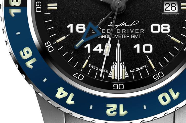 而身为致敬Brian Shul的作品,Engineer Hydrocarbon AeroGMT Sled Driver也不免俗地在手表上放上一些和这位主角有关的元素,例如面盘6点方向印有Brian Shul的签名字样以及他所驾驶SR-71侦察机的图案;翻到表背,钛金属底盖中央同样刻上了SR-71侦察机的轮廓线条(底盖外围泽刻有全球个时区的代表城市名称与时差供佩戴者参考)。而表款搭载的机芯本身也具有COSC瑞士天文台认证,确保Brian Shul能获得精准的时间资讯。能让Brian Shul这种传奇飞行员都认可的表,足见Engineer Hydrocarbon AeroGMT Sled Driver的品质的确不俗,从中也体现出品牌研发运动表的专业精神。
