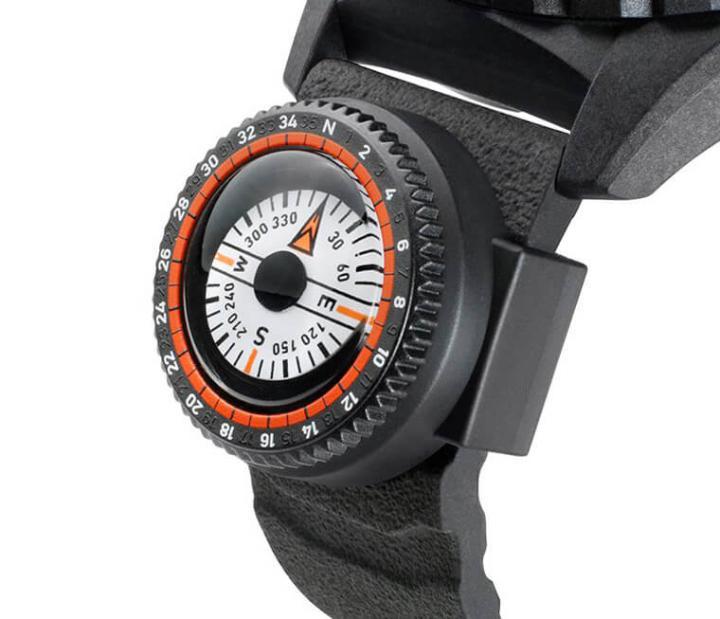 Bear Grylls Survival Chronograph Master Series 3745还有个与一般手表不同之处在于它的橡胶表带上还额外加装了一枚小型的指南针,这等于是面盘外缘四个罗盘方位的加强辅助装置,这枚小型指南针可以拆卸,但是放在手表上对于佩戴者而言也相当方便,如果在电子设备出状况的时候,手表上的这个小小巧思对于佩戴者找出一线生机会有很大的帮助。