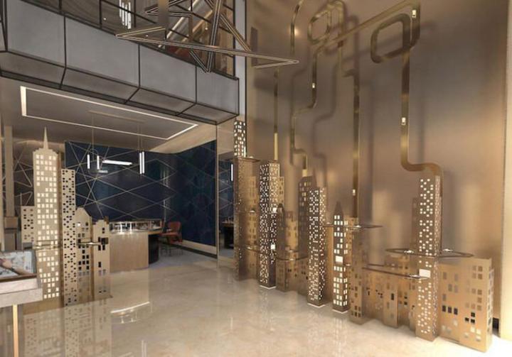 由于这是设在美国的旗舰店,加上江诗丹顿早在1831年便已经进军美国市场的渊源,所以在纽约旗舰店的开幕期间,靠近落地窗的地区和一楼展区会被一件“铜色之城”装置艺术所包围,这件艺术品设计灵感来自美国艺术家Chris Burden 2010年创作的Metropolis II,主要呈现方式是一组汽车和轨道装置,江诗丹顿和艺术家结合“大都市the idea of a city”的概念,目的是致敬纽约这个五光十色的国际都市。