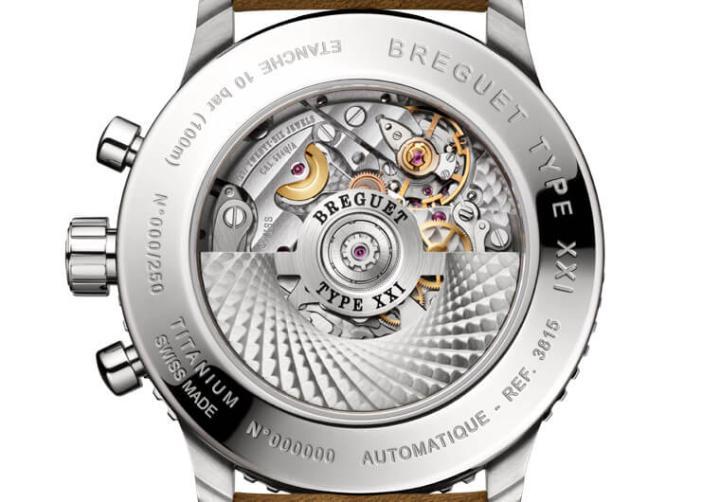 表款虽然是飞行表,但它可也是具备了旋入式表冠、100米防水等与海的领域相关的性能,翻到表背可在透明底盖下发现表款搭载584Q/A机芯的面貌,这枚机芯采用硅质擒纵轮和摆轮游丝、震频4Hz,并经过6方位调校确保手表的精准度得的信赖,至于机芯的金质自动盘经过宝玑采用手工机刻,呈现出一种静中有动的奇幻效果,随着手表摆动而旋转时,自动盘的机刻装饰更会随光线照射反射出迷人光芒。