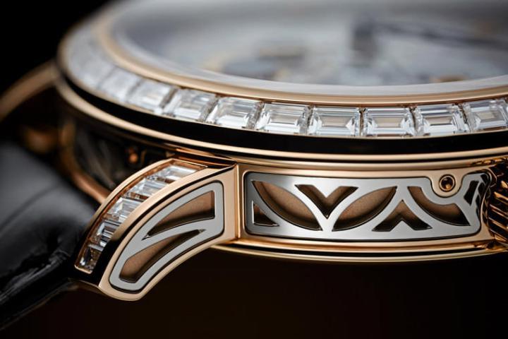 表款不仅功能复杂性不同凡响,重点在于它结合了钻石镶嵌、金雕等装饰工艺,再加上百达翡丽少见的蓝宝石面盘设计,让人感受到表王精湛制表工艺的同时,也彻底享受到了极致的视觉感官飨宴。