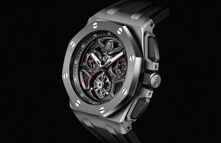 AUDEMARS PIGUET爱彼的皇家橡树离岸型系列原本有3款具备陀飞轮装置的作品,它们都结合宛如系列定番的计时码表功能,其中26421ST和26421OR可以视为同一款(前者是精钢表壳、后者是玫瑰金表壳),至于26348IO则是采用钛金属表壳搭配黑色陶瓷表圈,两款26421表径都达45mm、26348IO的表径也有44mm,这几款还有个共通点就是它们都是手动上链机芯,然而最近AP发表的26622TI有点不ㄧ样,从表名皇家橡树离岸型飞行陀飞轮自动上链计时码表可知它启用了自动上链机芯,赋予手表更便利的佩戴实用性。