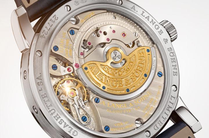 表款搭载L922.1 Sax-0-Mat机芯,这枚采用3/4自动盘设计的机芯拥有能更精准对时的归零设计,也就是当佩戴者拉出表冠的同时,摆轮会暂时停止运作,同时秒针也会回复到原点位置,而且得力于3/4自动盘设计,使得机芯的厚度可以控制在5.7mm,使得手表整体厚度不会过于沉重,还有朗格招牌的机芯工艺像是3/4夹板、格拉苏蒂罗纹、手工雕刻摆轮桥板等,在这枚机芯上都能一览无遗。