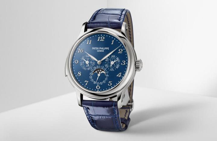 在5374G登场后,百达翡丽也决定要停产铂金款式,因此这款作品之后将只剩白金搭配蓝色面盘的组合。