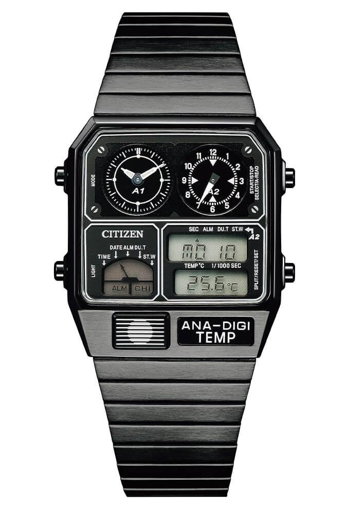 西铁城CITIZEN曾在1982年时推出兼具指针显时(Ana)、数位显时(Digi)及温度计测(Temp)的手表作品,在当时复古未来主义的时代氛围下大受好评。
