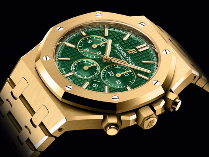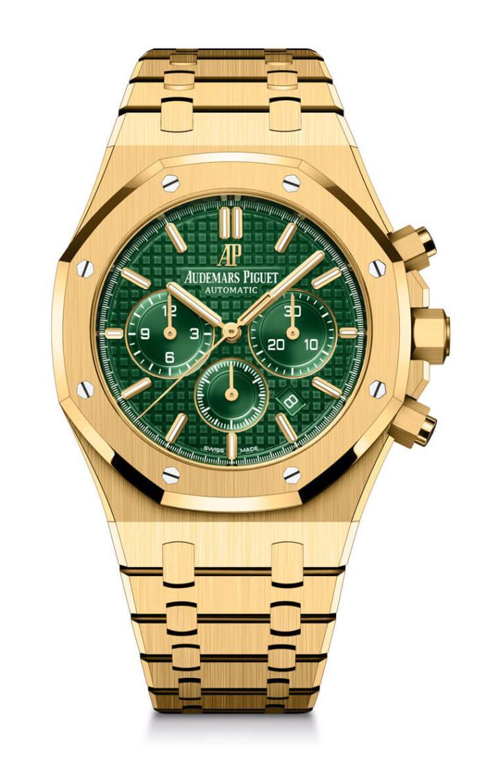 AUDEMARS PIGUET爱彼皇家橡树系列旗下的计时码表目前多半采用双色面盘设计,但2021年品牌新出的绿色有点跳脱这样的框框,改以统一的绿色示人,而原本皇家橡树计时码表黄金款只有唯一的蓝面金色计时盘款式,在绿色面盘加入后,会不会扭转黄金皇家橡树计时码表原本受到关注程度较低的局势?着实令人充满期待。