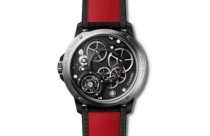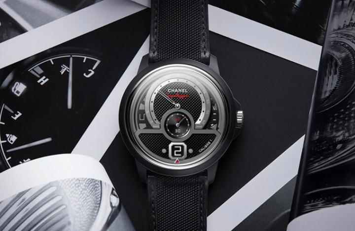 至于面盘上虽然还是保有Monsieur的招牌格局,包括上半部的240度逆跳分钟、中间的小秒盘以及靠近6点方向的跳时视窗等等,但是香奈儿为了呼应”Superleggera”这样的超跑元素而挹注更多新元素到手表的面盘细节中。