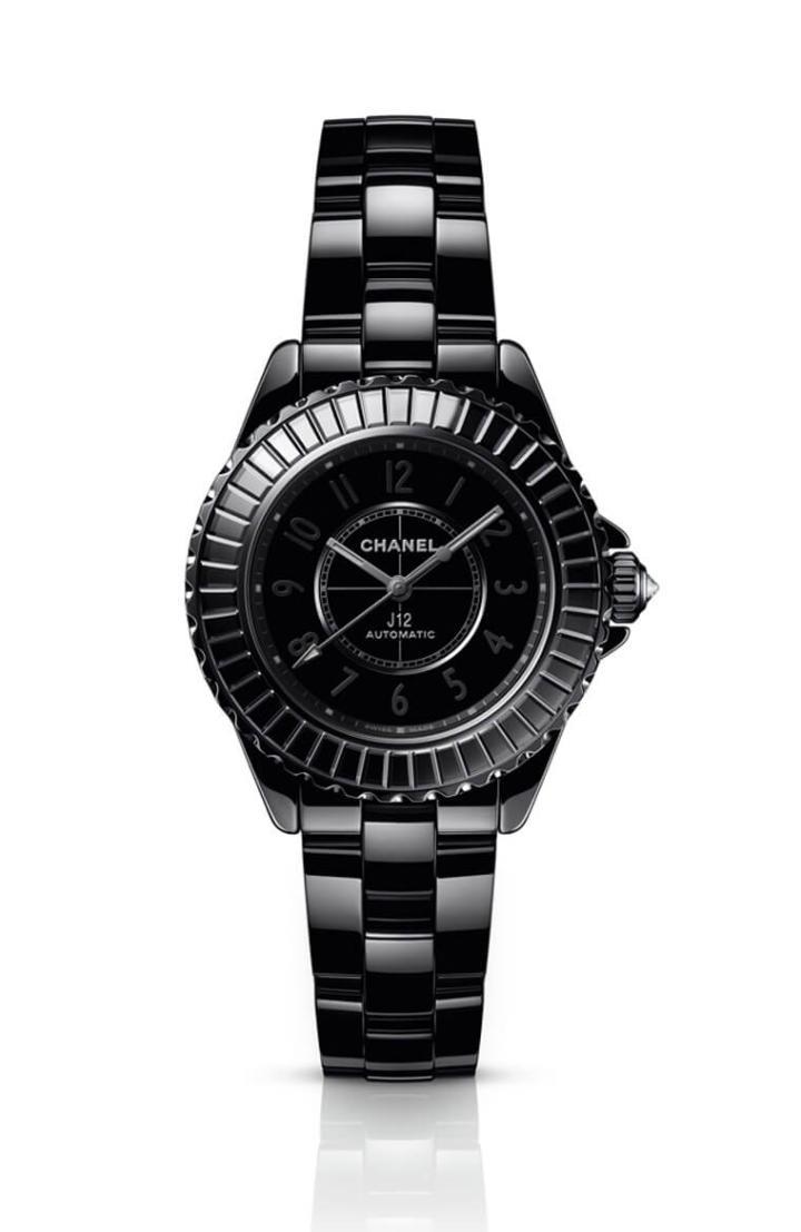 为了因应新机芯进驻,香奈儿分别推出两款J12 Caliber 12.2机芯手表-Edition 1,一款是白色抗磨陶瓷材质搭配白漆面盘、另一款是黑色抗磨陶瓷材质搭配黑漆面盘,同时品牌也为了诠释Tone on Tone单一配色的概念,而分别替两款J12手表配置与表壳同色的长阶梯形切割蓝宝石水晶镶嵌表圈。不过两款表的表冠都镶有一颗钻石,且各自限量555只,这两个部分倒是没有受到表壳颜色影响。