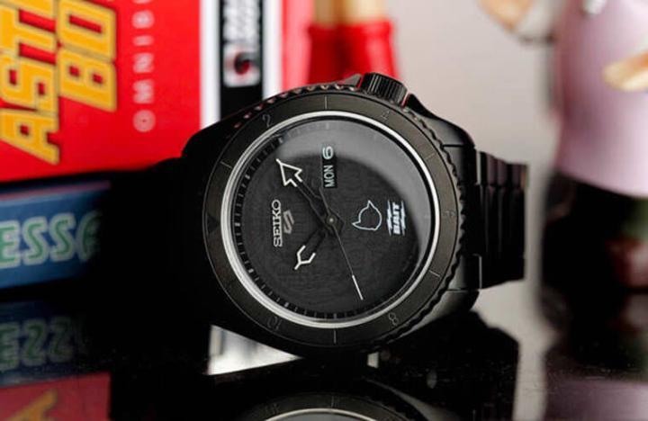 阿童木精工5号联名表的不锈钢表壳镀上黑色镀层,包括金属链带也都是黑色,并且一路延续到表圈、面盘都是一致的黑色调,和先前的5 Sports联名表有点不同的是,BAIT x Astro Boy这次的联名风格低调许多,乍看手表采用潮流味十足的All Black设计,不过近看面盘会发现里面有许多精彩细节。