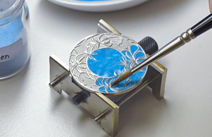 等图案雕刻完成后,江诗丹顿会融入大明火珐琅工艺,珐琅工艺至今依旧因为其高制作难度而受到收藏家所喜爱。工艺师在制作过程中需在面盘涂上数层珐琅釉料,每涂一层便要将面盘放置在摄氏800~900度的窑中烧制,过程中需要靠着工艺师的经验去控制釉料的颜色和烧制产生的反应,如果其中一个环节出错,就会让一切都前功尽弃必须从头来过。玫瑰金版本采用的是棕色珐琅、铂金版本则是施以蓝色珐琅,冷暖色调赋予两款表展现各自的独特性。至于面盘中央的铂金或玫瑰金老虎 图案,一样是经由技艺精湛且经验丰富的工艺师制作完成后再镶于面盘上,为手表营造出最关键的主题性。