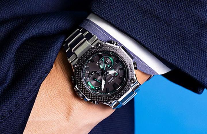 至于MTG-B2000XD的碳纤维材质主要应用在表圈部分,表圈侧面也能够发现由玻璃纤维与碳纤维堆叠的黑绿层次,这种配色组合为G-SHOCK新的尝试,目的是想让腕表看起来具有动静皆宜的态度。 MTG-B2000YBD和MTG-B2000XD的表带为金属与强化树脂零件组成的复合式表带,目的是让表带拥有金属质感之余,同时又能带来更贴合与轻盈的佩戴感受。而既然G-SHOCK已陆续采用碳纤维材质制作表壳或表圈零件了,下一步会不会接着推出碳纤维表带呢?据卡西欧专务董事增田裕一先生表示,开发腕表材质的目的不单只是为了提升使用机能,也必须视腕表整体的设计是否合适而定,他认为G-SHOCK当然不会排除打造碳纤维链带这样的构想,但前提还是要先能与产品本身的调性符合才有机会有进一步的结果。 从MTG系列近年不断有新突破的腕表作品突显出G-SHOCK勇于尝试的企图心。增田裕一先生总结说道,品牌积极革新的目标是希望能创造出G-SHOCK独树一帜的设计型态,如此一来更能强化G-SHOCK腕表兼重功能与设计、并强调开创个人生活风格的制表初衷。