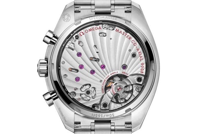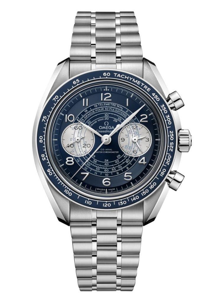 欧米茄创作超霸Chronoscope计时码表时参考了1940年代的古董手表,例如蜗纹式的面盘设计、例如柳叶形指针以及同心圆纹刻度环等等,都可以窥见新款与古董表之间的深厚渊源。而它与一般计时码表最大的不同在于同时具备测速计、测距仪与脉搏计等三种计时功能的附加刻度,其中测速计设于表圈、测距仪与脉搏计则是整合在面盘内圈的蜗纹设计中。测速计主要用途为测量两个特定地点间的平均时速,测距仪的功用则是用来显示佩戴者与可见到及可听到之事物之间的距离,另外脉搏计则能以心跳或脉搏30次为单位,协助佩戴者测量出自己的脉搏数据。