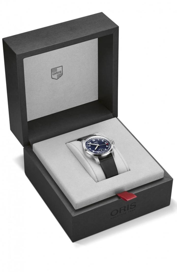 不过Big Crown Calibre 403指针式日期表与1930年代最大的不同还是在于Calibre 403机芯身上,从透明底盖可以窥见这枚机芯的样貌,简单复习一下Calibre 400系机芯的特征,首先是它的抗磁性能优异,机芯含有30枚有色金属和抗磁零件,包括硅制擒纵齿轮和锚固件等,使其抗磁性能和标准的瑞士机械机芯相比提升90%以上。再来就是动力储存,ORIS旗下采用通用机芯的作品让人比较不满意的地方就在于动力储存比较弱一些,但是Calibre 400系列一举把动能提升到五天(120小时)水准,关键在于品牌采用了双发条盒的配置。最后一点就在于机芯本身经过各方面的优化后大幅增加稳定性,所以ORIS敢给出长达十年的保固期,不过要注意的是保固并非购入手表后就立马生效,而是表主需要先上品牌官网注册会员再进行登录的动作才会生效。
