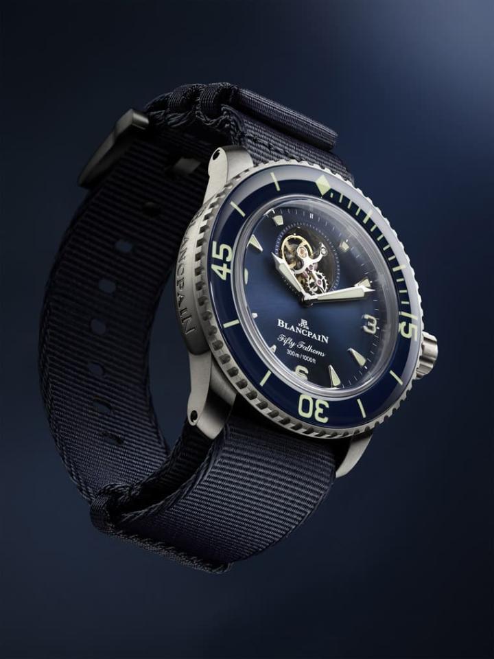 现今我们所熟知的BLANCPAIN宝珀经典水鬼五十㖊样貌大致时从2007年左右品牌复刻早期作品而来,包括蓝宝石水晶表圈、表壳与面盘设计等等。宝珀在当年不只是把接近原始五十㖊造型的手表带回,甚至还增添了一款五十㖊8日动力储存陀飞轮手表创造话题,因为那时候带有复杂功能的潜水表并不多,此举展现出品牌钻研防水性能与复杂工艺炉火纯青的功力;相隔14年,宝珀再度于2021年重新打造新款的五十㖊8日动力储存陀飞轮手表,新款承袭当年旧作的精髓,并以更为精炼的风格再现世人眼前。