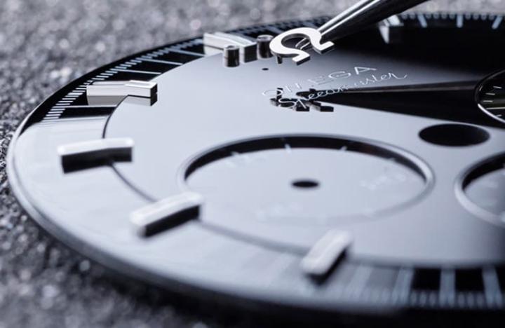 新款321机芯超霸计时码表采用欧米茄研发的18K Canopus Gold™白金合金制作表壳,其38.6mm的尺寸富有早期的时代风格,整体设计乍看与原款CK2915-1如出一辙,包括阔箭指针、下三眼计时盘,以及表圈上的测速计刻度等(当年超霸可是第一只把测速计刻度由面盘外缘移至表圈上的开山始祖)等等。手表的表圈与表壳同样为18K Canopus Gold™材质,不过测速计刻度还满有料的,因为欧米茄并非把刻度和数字印在上头,而是先进行阴刻,接着再凹槽内填入黑色大明火珐瑯,确保刻度的黑色可以长久保持,不会轻易褪色。