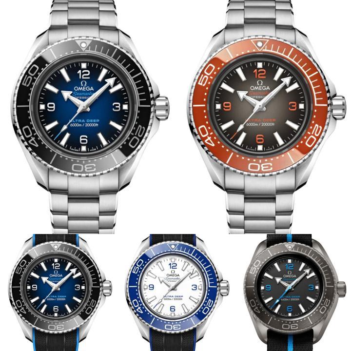 表款随着不同材质与颜色的表壳和陶瓷圈,搭配的面盘也有白色亮漆陶瓷面或蓝色渐层及灰色渐层等变化,加上手表可能搭配O‑MEGASTEEL炼带、橡胶表带或NATO表带,欧米茄一次替Planet Ocean Ultra Deep出齐7种版本,让追求极致防水性能的表迷可以在众多“海马王”中找到最适合自己那一只表。