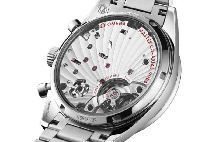 新款超霸’57手上炼计时码表搭载欧米茄新发表的9906手上炼大师天文台认证机芯,它的底板有别于品牌过往重制或开发的其他手上炼机芯,呈现类似3/4比例的大片式风格,上头饰有藤蔓花纹般的日内瓦波纹,看起来好像从擒纵系统发散出来一样赏心悦目(与2021年超霸Chronoscope计时码表搭载的9908倒是满有系出同源的感觉),机芯的规格与欧米茄其他天文台认证机芯相去不远,包括60小时动能、大于15,000高斯的超高抗磁性能等,品质足以让人戴得放心。