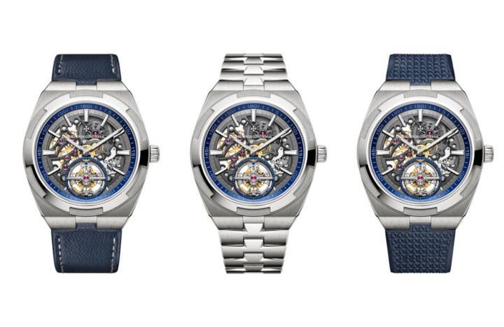 Overseas系列是现今表坛风行表带快拆装置的先驱之一,由于两款Overseas镂空陀飞轮都有搭配金属炼带,因此品牌也会再额外附上与面盘外缘刻度环颜色呼应的橡胶表带与小牛皮表带各一,其中玫瑰金款的胶带与皮带配置的是针扣,而钛金属款胶带与皮带配置的则是折叠扣,凡此都能突显两种材质版本的个性。