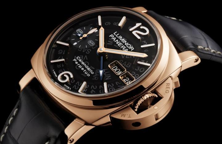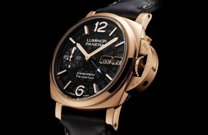 PAM01269和沛纳海2021年推出的PAM00715以及PAM00742等作品搭载同枚机芯;话句话说,这款表是品牌目前屈指可数的万年历复杂功能手表。其采用品牌独家的Goldtech™红金制作表壳,表壳与PAM00715以及PAM00742同为44mm,也都有Luminor不可或缺的表冠护桥设计,同时手表还搭配了黑色的鳄鱼皮表带,这些配置都与前两款Luminor Calendario Perpetuo大致相同。