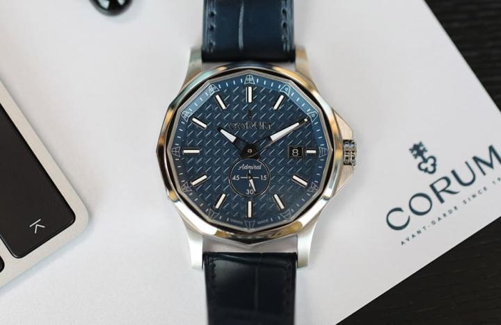CORUM昆仑表招牌系列Admiral海军上将2022年新推出表径42mm的小三针自动表,持续以别具辨识度的造型,借由不同材质、配色和表带等,诠释手表来自帆船运动的设计渊源。