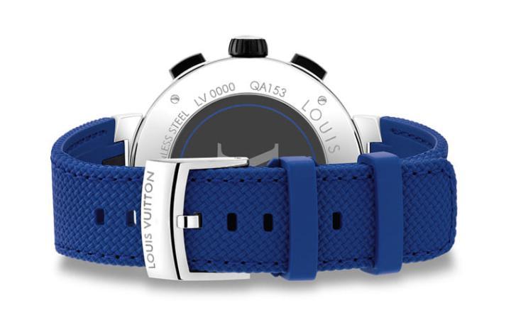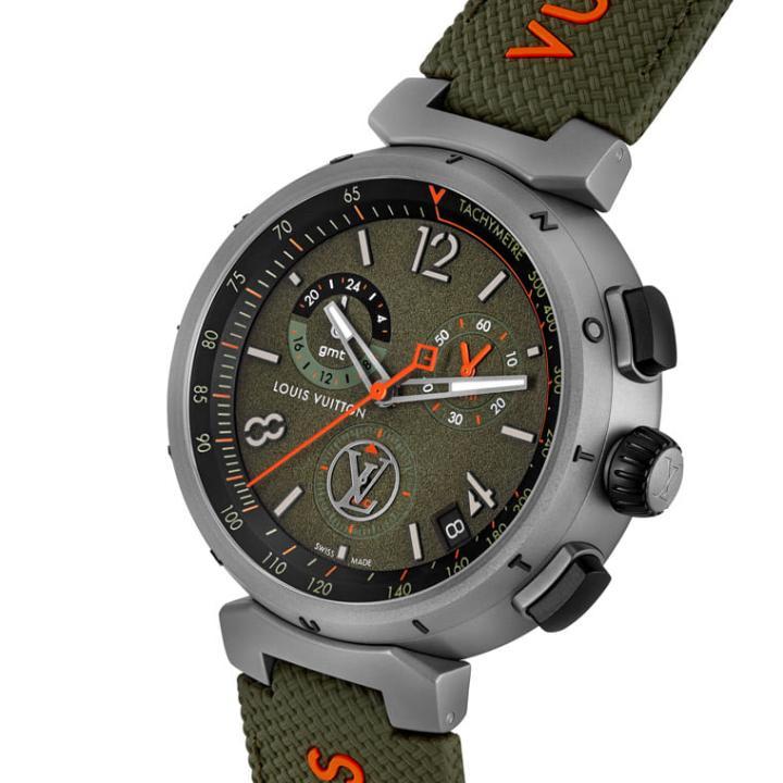 最后要提的是Tambour Outdoor Chronograph GMT都具备路易威登自行研发的表带快拆系统,如果佩戴者对于原厂配置的蓝色或绿色胶带有更多想法,还可以前往品牌专卖店选择替换表带,依照自己的喜好和风格再选一条可以和原厂表带交替使用的备用表带,从中衍生出灵活的穿搭组合。