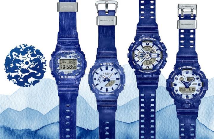 此系列包含DW-5600、GA-2100、GA-110和GA-700等款式,G-SHOCK用蓝色混色树脂打造手表迷人视觉基础,再透过面盘和表带的蓝白相间配色组合让人想起中国传统的陶瓷图样,品牌于底盖镌刻上带有中国风的飞龙图案,其中DW-5600款式也是此系列中唯一在面盘上延续表背飞龙图案的特例,将系列精神诠释得淋漓尽致。