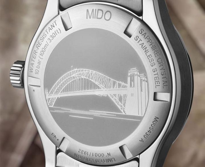 表背实底盖镌刻与面盘呼应的雪梨港湾大桥图案,底盖内部保护着Caliber 80自动机芯,这枚机芯可提供80小时动力储存,即使周末两天都不戴表,隔周上班时也不需先重新替手表上炼。灵感源于建筑20周年先锋系列限量表呈放在专属表盒中,并配备有一枚建筑图腾之收藏纪念牌,美度表为了强调主题灵感、也就是雪梨港湾大桥落成于1932年,因此手表的限量数同为1932只。
