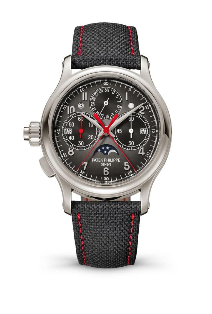 相较于5372P面盘上的大小指针都是用同色调呈现,5373P-001特别针对计时功能与走时功能用颜色进行区分,包括计时小表盘指针、面盘中轴两枚追针指针都涂上红色,至于其他走时资讯指针则为银白色调,佩戴者因而能够更清楚各项功能的作用,细节中体现品牌精益求精的创作思维。