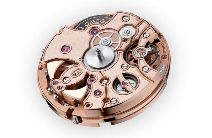 直接来看看1932机芯有什么特色,首先它的零件中含有约重40克的Sedna™金(连音簧都是Sedna™金材质,相当豪华),光是材质方面就比一般机芯高贵,同时欧米茄为了让机芯也能通过大师天文台认证,所以在机芯材质中严选有色金属来制作机芯零件,以确保机芯能拥有高于15,000高斯的抗磁效果。