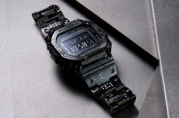 GMW-B5000TCC-1以内部搭载3459机芯的电路板为灵感,并采用Nippon Steel Corporation所开发的TranTixxii®钛合金材质制作表壳。G-SHOCK为了如实呈现电路板的效果,在制作过程中先在钛金属表壳与炼带以雷射雕刻技术刻上电路板线路图,接着在金属表面进行黑色IP处理,等到镀上黑色后,G-SHOCK会不厌其烦地进行第二次的雷射雕刻处理,让手表上的电路板图案变得更深刻也更立体,仿佛一款从未来走进现代的手表。表壳右下角精心镌刻上”3459”这行数字,与表壳右上角印制的白色”TITANIUM”清楚说明手表的材质与灵感两大重要概念。